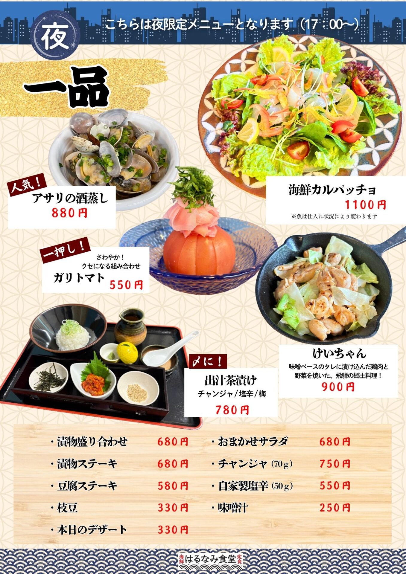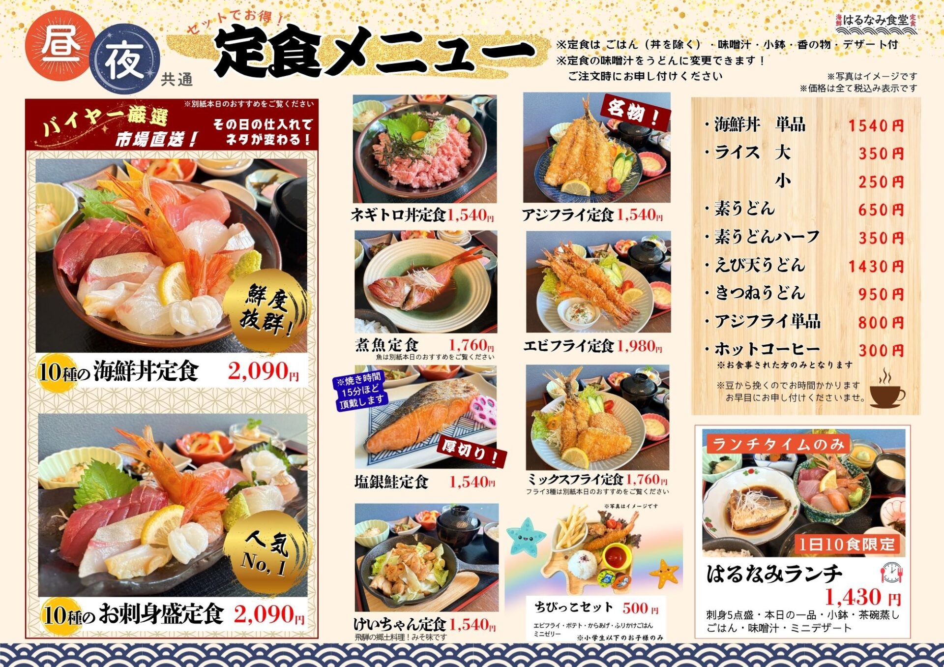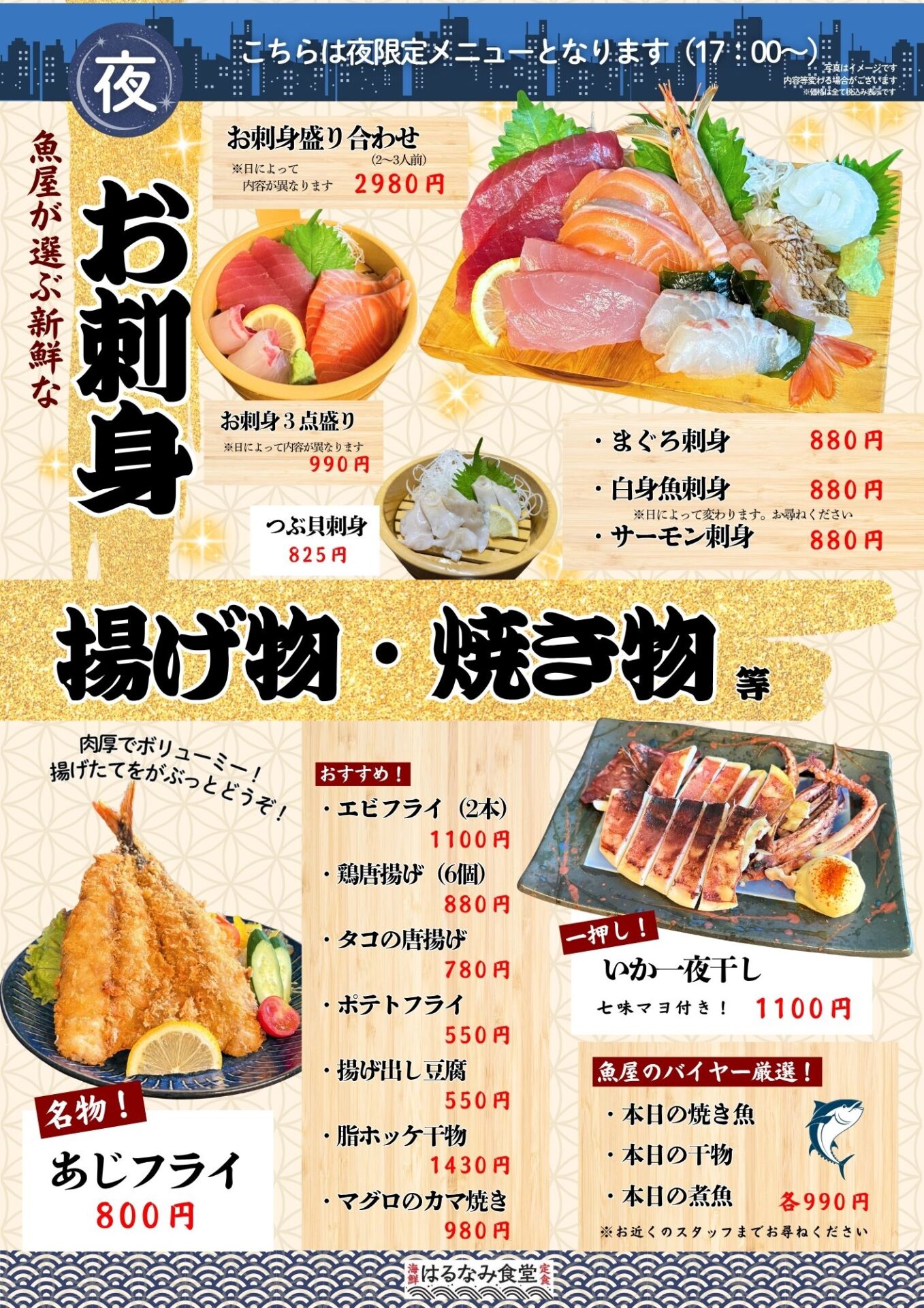 魚の旨みを存分に味わえるはるなみ食堂では、新鮮な魚を使った料理を心を込めてご提供し、心も体も元気になる時間をお届けします。一口ごとに広がるおいしさと温かな雰囲気の中で、特別なひとときをお楽しみください。
